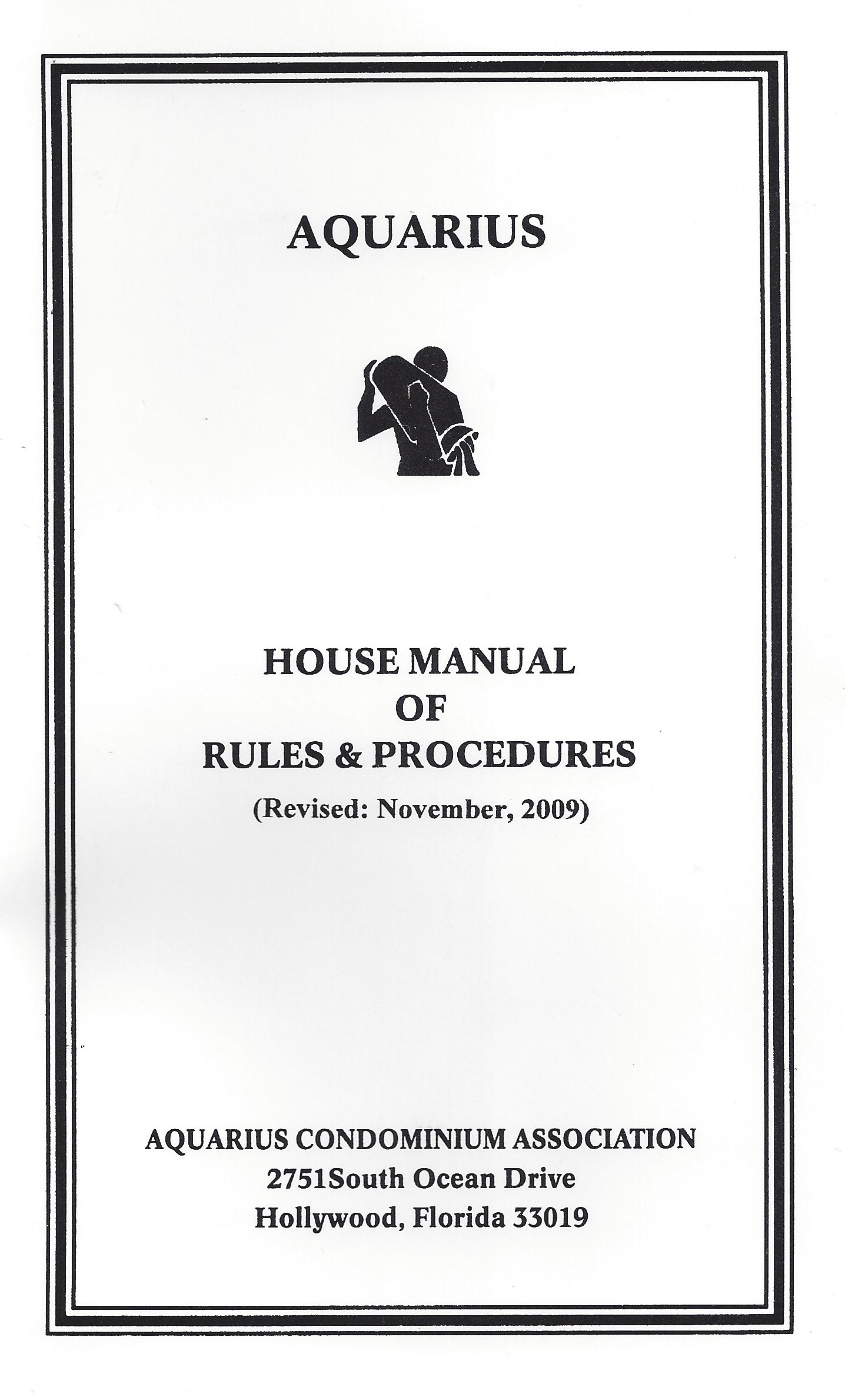 The members of this Committee to update and re-issue the House Manual of Rules & Procedures wish to express our appreciation to the committee preceding us, for the excellent job they did three years ago; and to the current Board and Manager for their input. We have found all of this an invaluable guide.