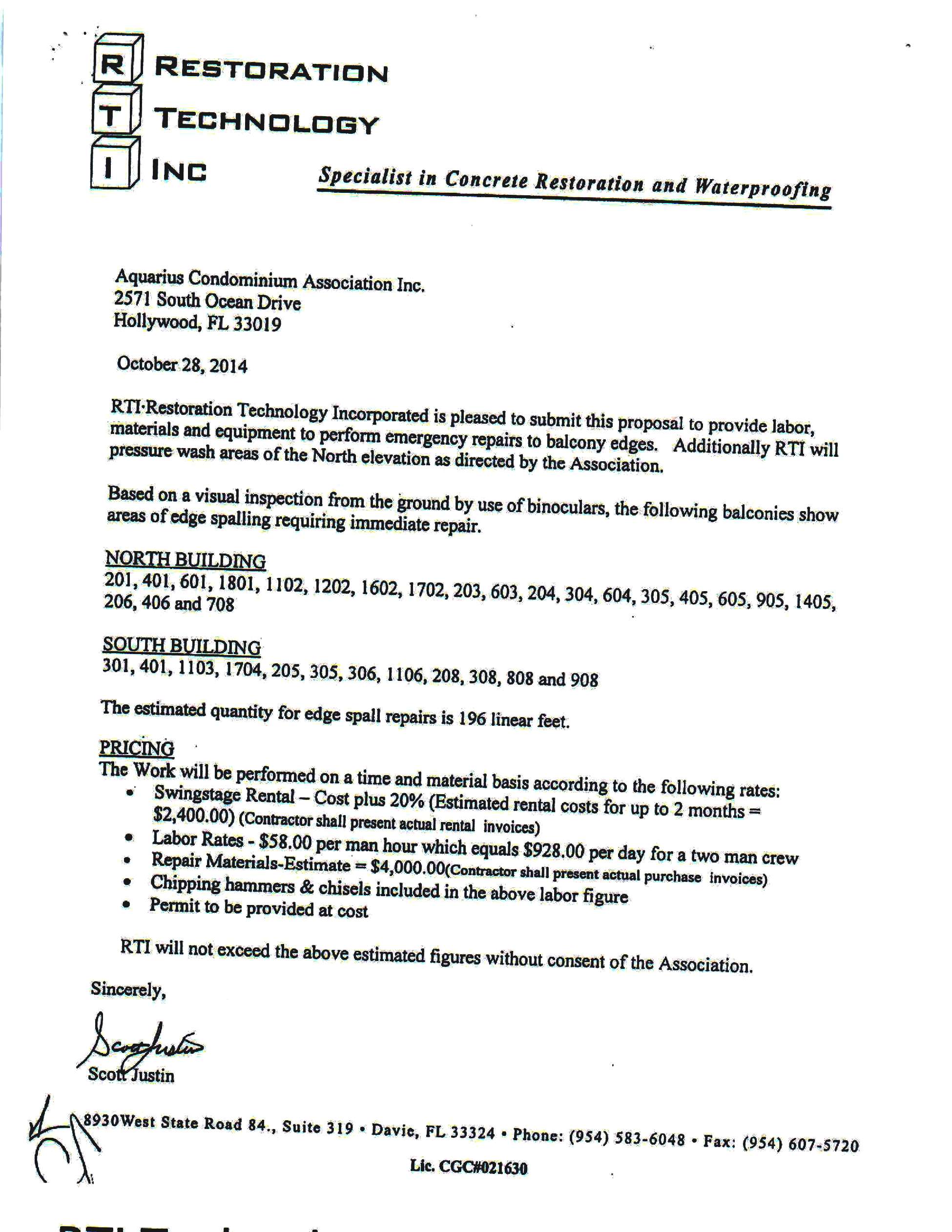 Proposal Restoration Balconies Edges – RTI – October 28, 2014