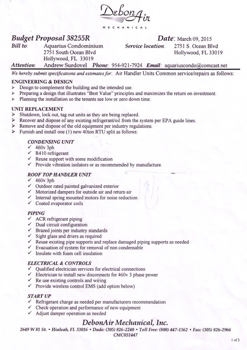 20150309_ DebonAir Air Handler repairs proposal 2