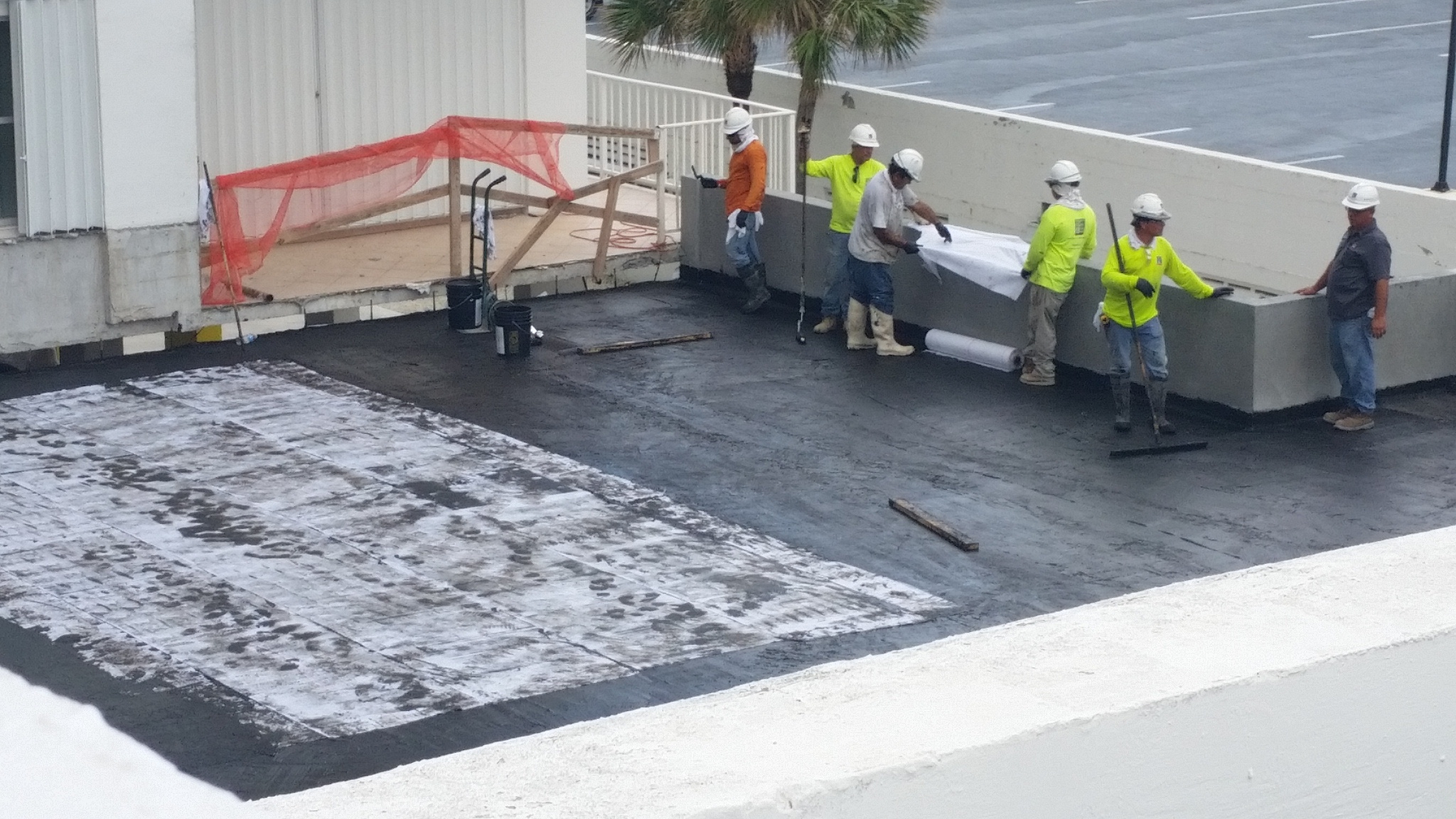 The Valet Deck work advances. Now Phases 2, 3, 4 and 5 get waterproof protection.