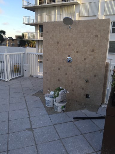 The contractor has finished the bathrooms. The two doors will be painted today and installed Saturday. They will clean the bathrooms and wait for the pavers to be fixed in order to close the permit. Hollywood stone has been on site but no work has been done. The manager has been calling them to be on site as soon as possible to call for final inspection