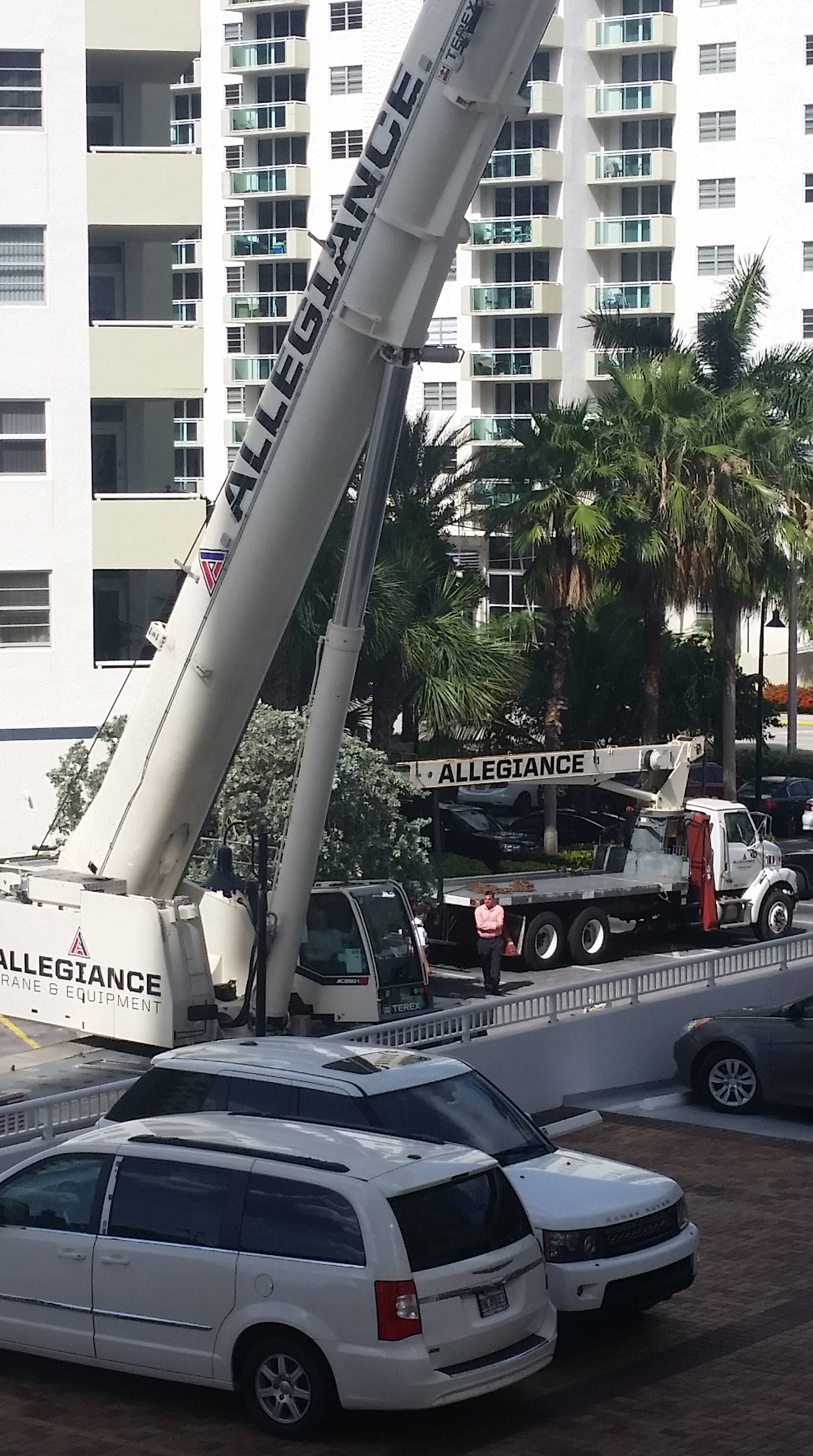 Hoisting New Central Air Cond. Components to the top of Aquarius June 20, 2016