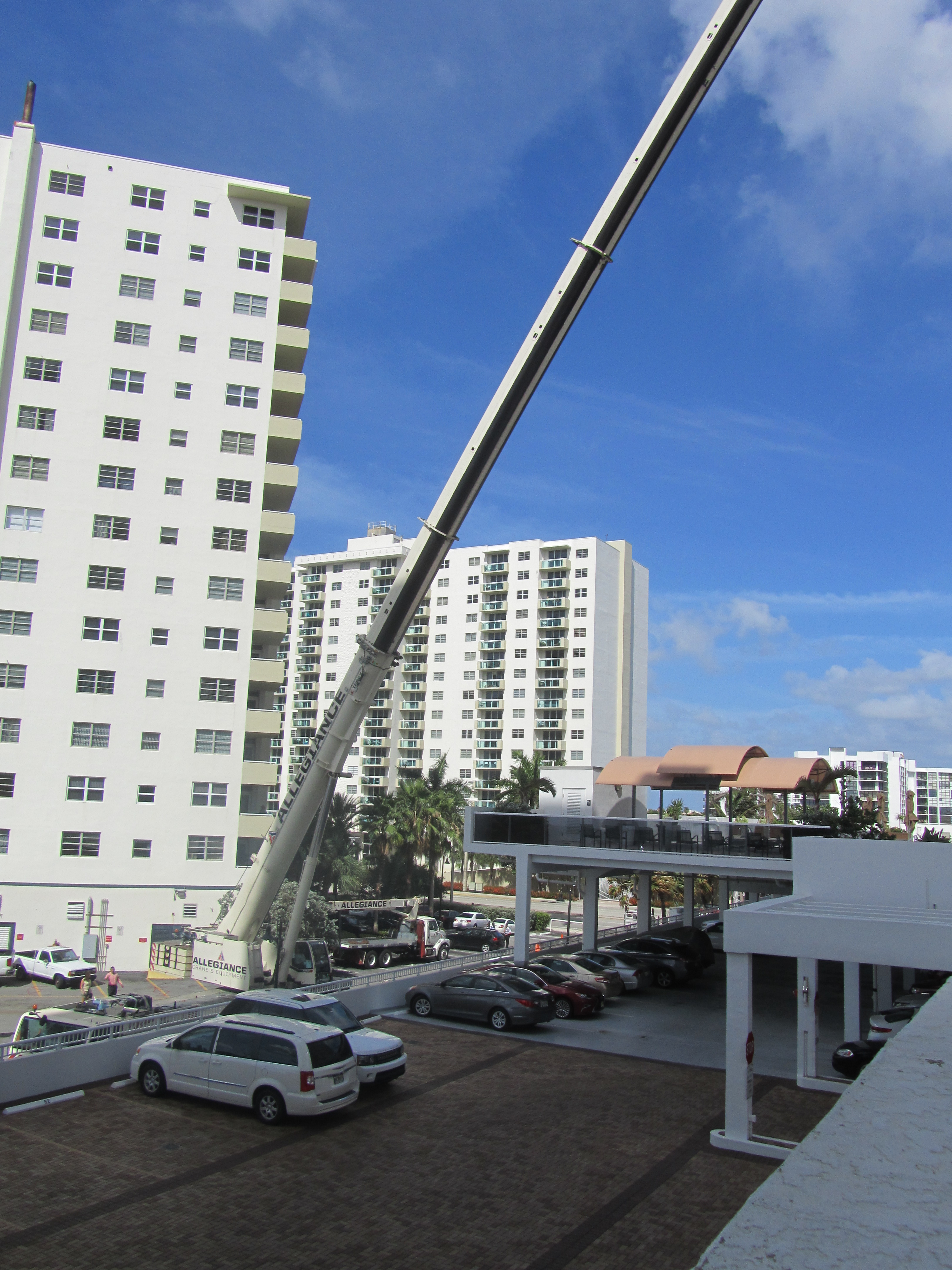 Hoisting New Central Air Cond. Components to the top of Aquarius June 20, 2016