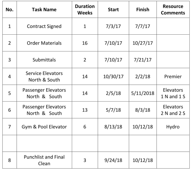 Tentative Elevators Installation Schedule subject to changes.