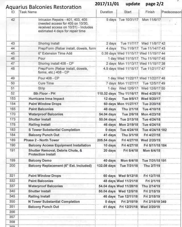 Aquarius Balconies Restoration Schedule 2017/11/01 update