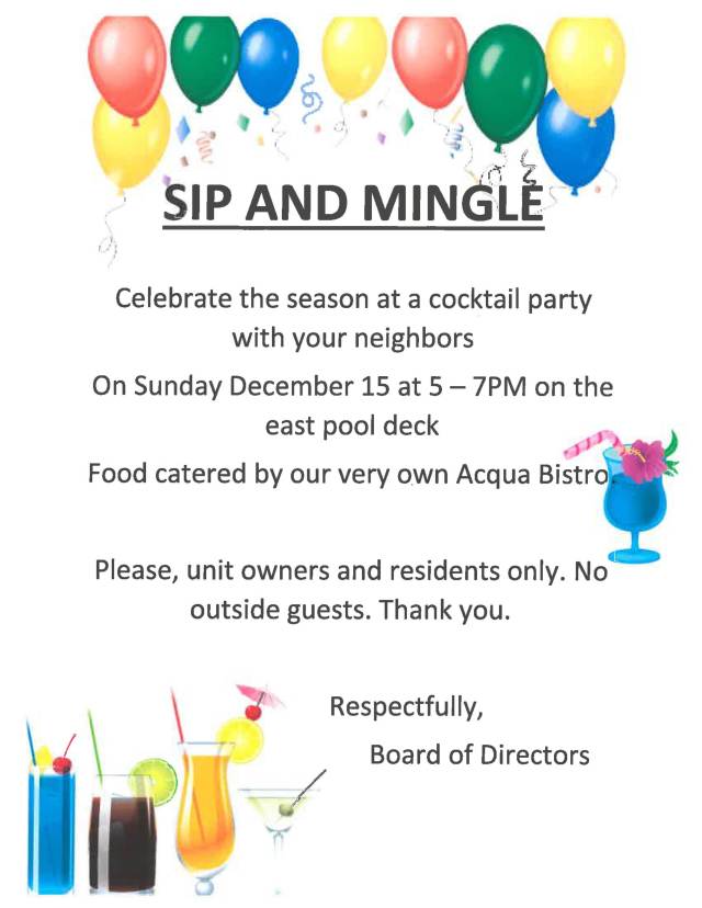 Sip and Mingle – Sunday December 15 at the East Pool