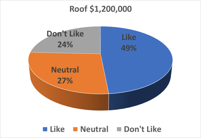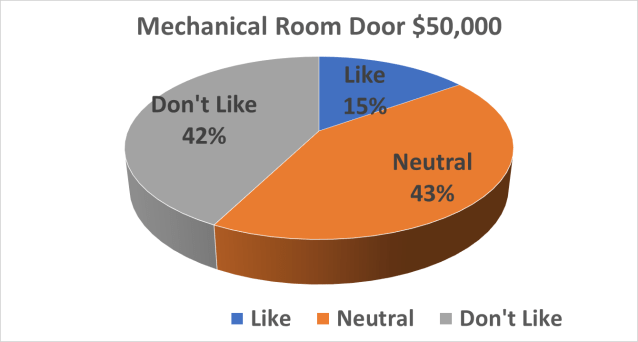 Thirty three Aquarius Residents answered the Survey. Here the results. A few respondents did not understand the projects under consideration. This shows that additional information is very important. There were comments also on the cost of the proposed stairs. In January both stairs added up to $100,00. In July the quote came up to $ 173,000.
