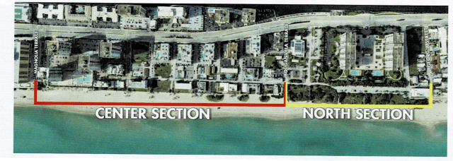 The idea, seems to be, to piggyback in the already approved beach nourishment that entails beach enlargement with construction of protection dunes. Maybe more important than the Hollywood Broadwalk South extension would be if Aquarius would benefit from the protection of the dunes or the dunes building would stop at Magnolia Terrace. Aquarius beach strip is quite narrow. The construction of dunes and beach enlargement would be a positive factor protecting the property from king tides and eventual the periodical strong waves.