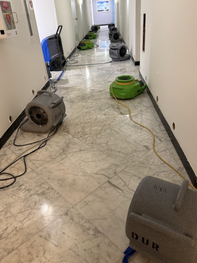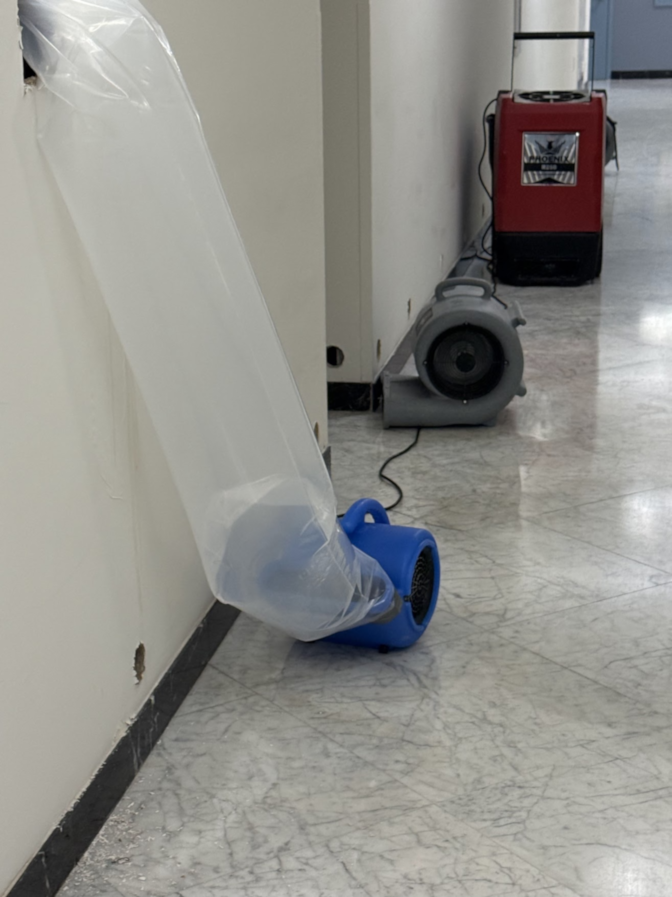 Alex, board member, Tommy, security and Oleg Ella’s husband helped to extract water from the carpeting.