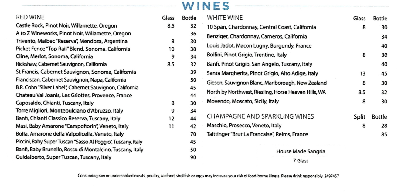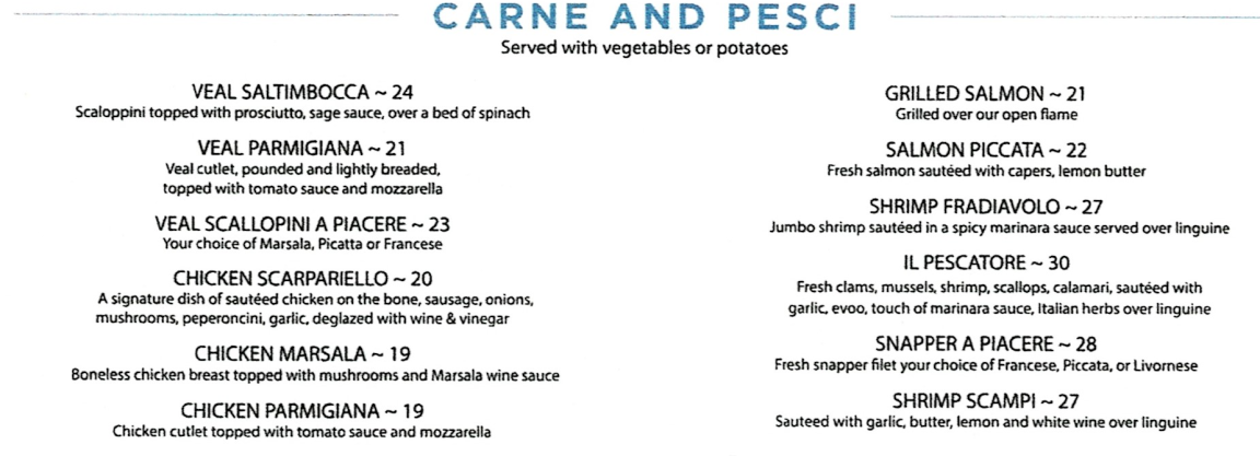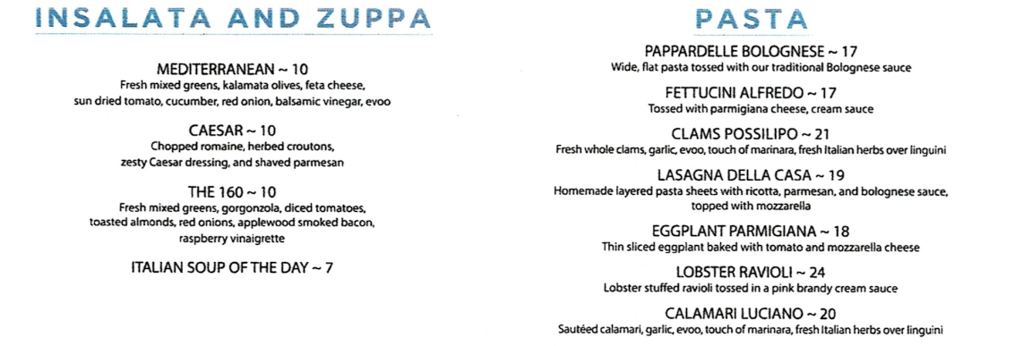 Lunch Antipasto Insalata and Zuppa Pasta Carne and Pesci Steaks and Chops Wines