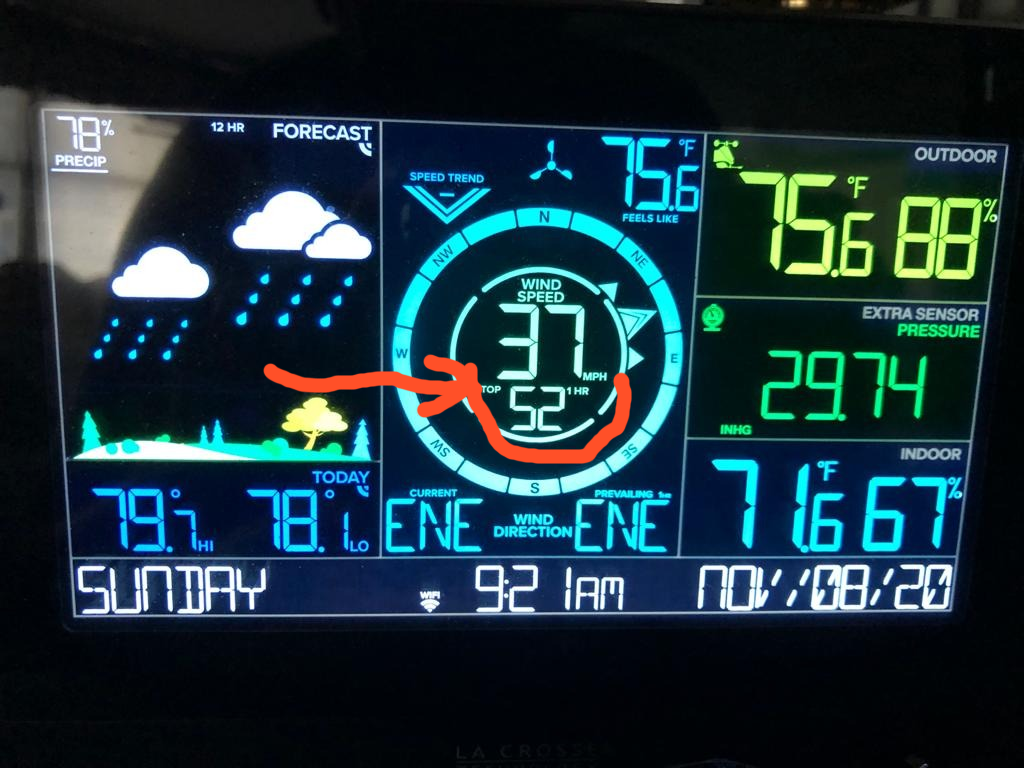Wind Speed at Aquarius reaches 52 miles per hour