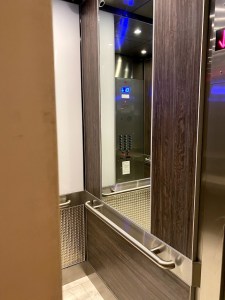 The tile flooring in the South Tower personal elevators are not the same. One has glossy tile while the one next to it has a satin finish. It’s difficult to understand the reason for this kind of discrepancy.