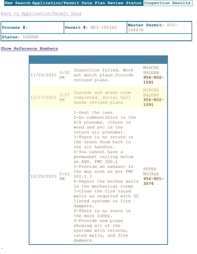 On the theme of scope. VTECH was not to able detect problems in the duct-work of the Lobby how could they correct the scope of the Central System? The City of Hollywood refused their permit application and refused to close the partial permit more than one time.